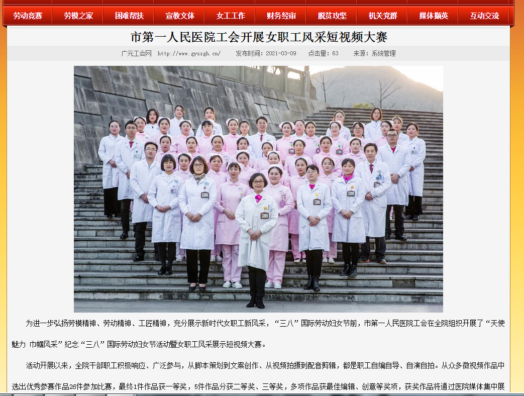 市工会官网:市第一人民医院工会开展女职工风采短视频大赛