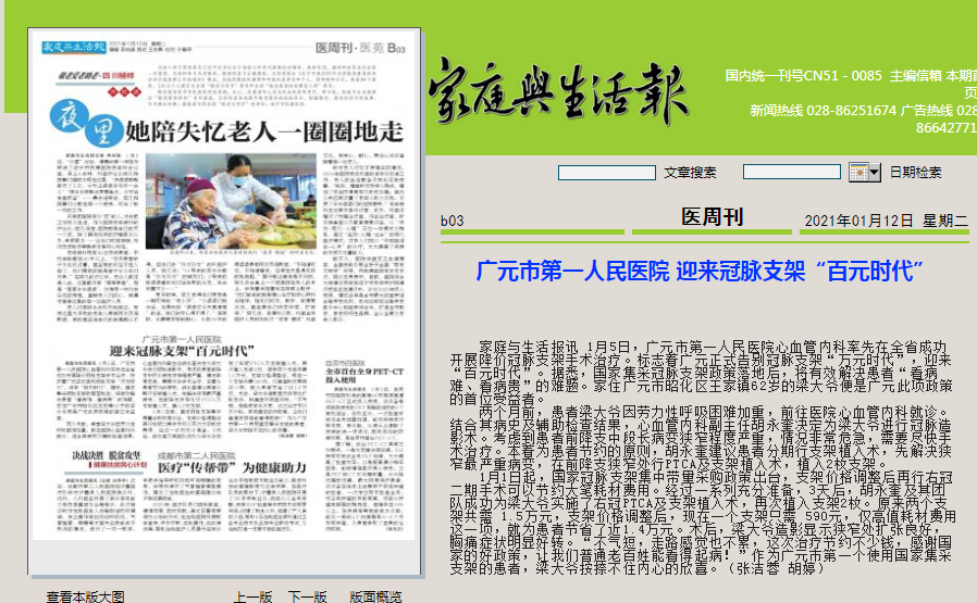家庭与生活报:广元市第一人民医院 迎来冠脉支架“百元时代”