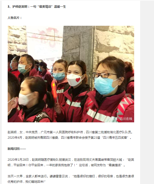 川观新闻:川观盘点|2020年广元十大新闻人物 护师赵英明
