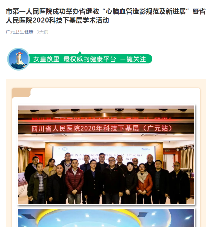 广元卫生健康:市第一人民医院成功举办省继教“心脑血管造影规范及新进展”暨省人民医院2020科技下基层学术活动