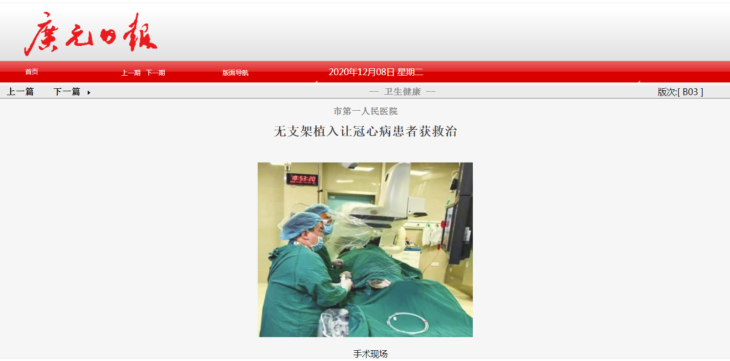 广元日报:市第一人民医院 无支架植入让冠心病患者获救治