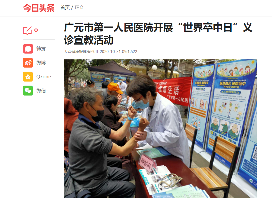 今日头条:广元市第一人民医院开展“世界卒中日”义诊宣教活动