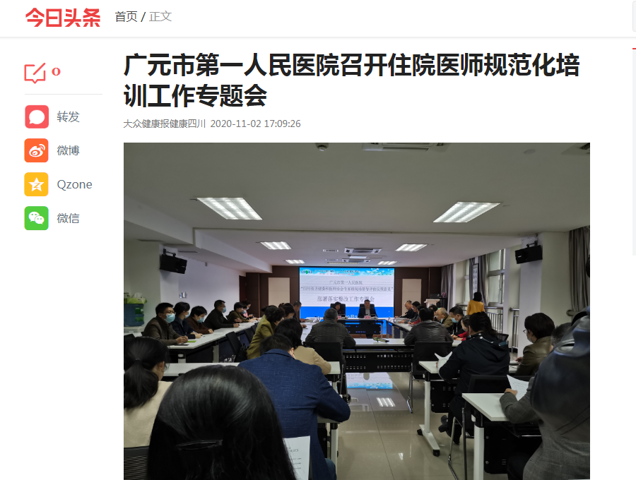 今日头条:广元市第一人民医院召开住院医师规范化培训工作专题会
