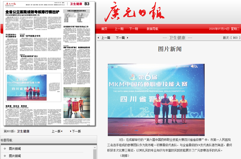广元日报:市第一人民医院斩获“第六届中国药师职业技能大赛四川省省级赛”三等奖