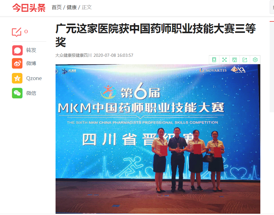 今日头条:广元这家医院获中国药师职业技能大赛三等奖