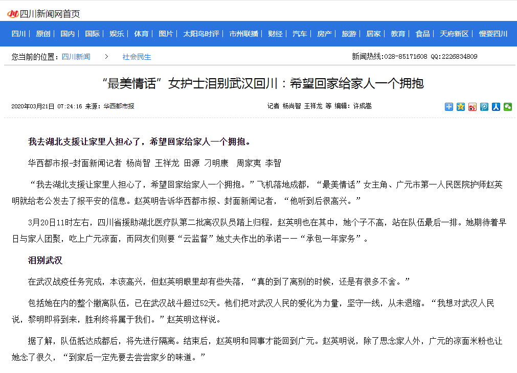 四川新闻网:“最美情话”女护士泪别武汉回川:希望回家给家人一个拥抱
