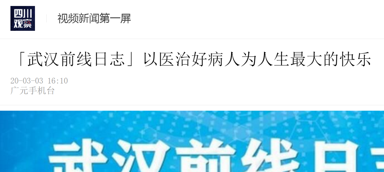四川观察:「武汉前线日志」以医治好病人为人生最大的快乐