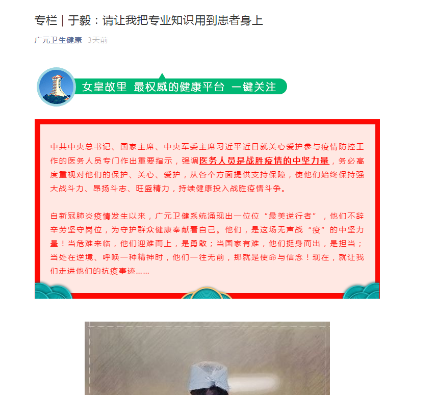 广元卫生健康:专栏 | 于毅:请让我把专业知识用到患者身上