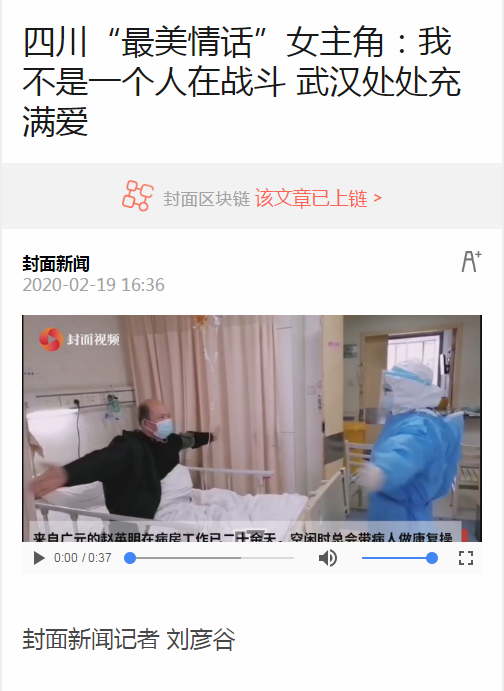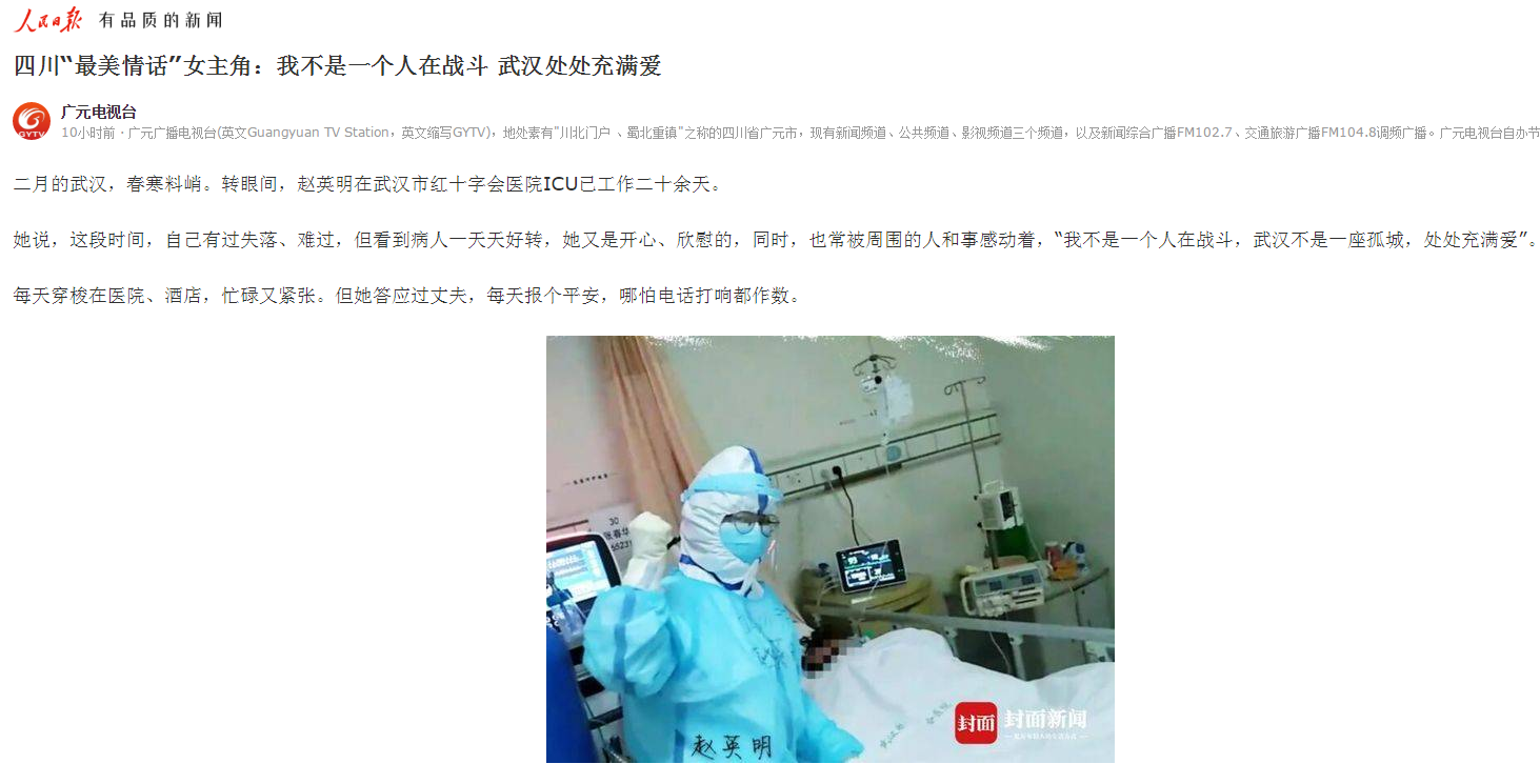 封面新闻:四川“最美情话”女主角:我不是一个人在战斗 武汉处处充满爱