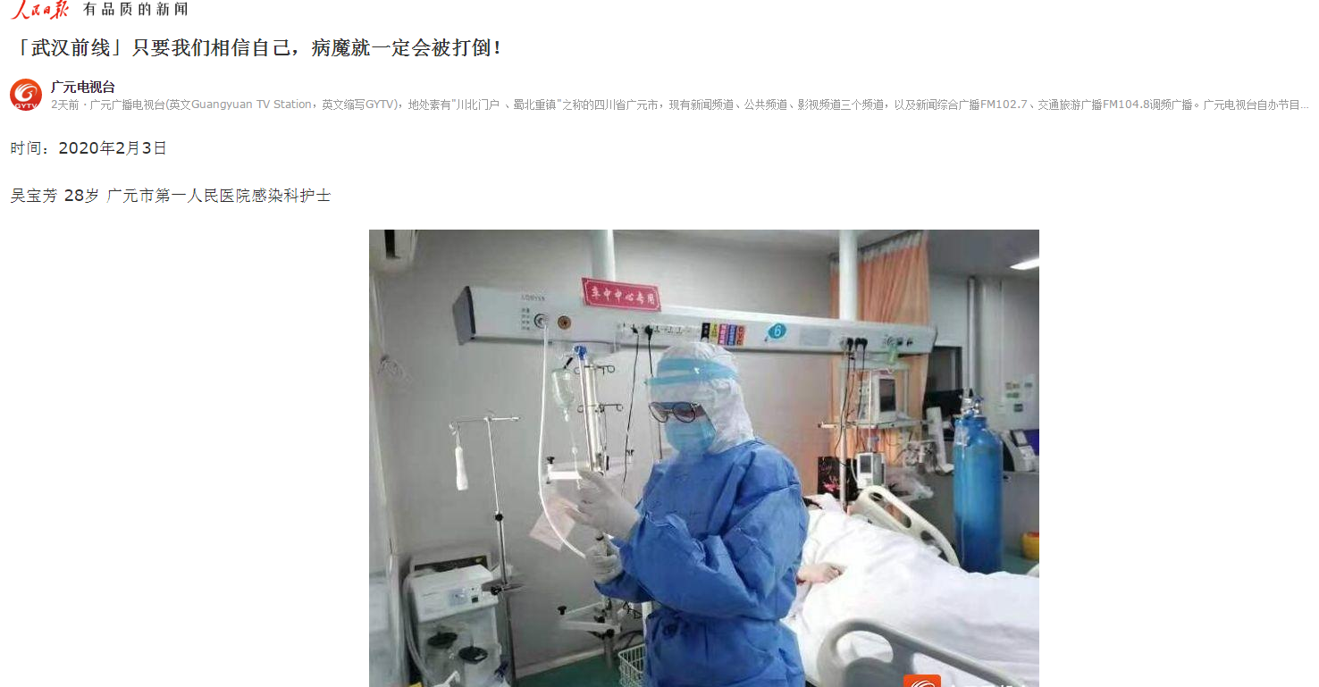 人民日报:「武汉前线」只要我们相信自己,病魔就一定会被打倒!
