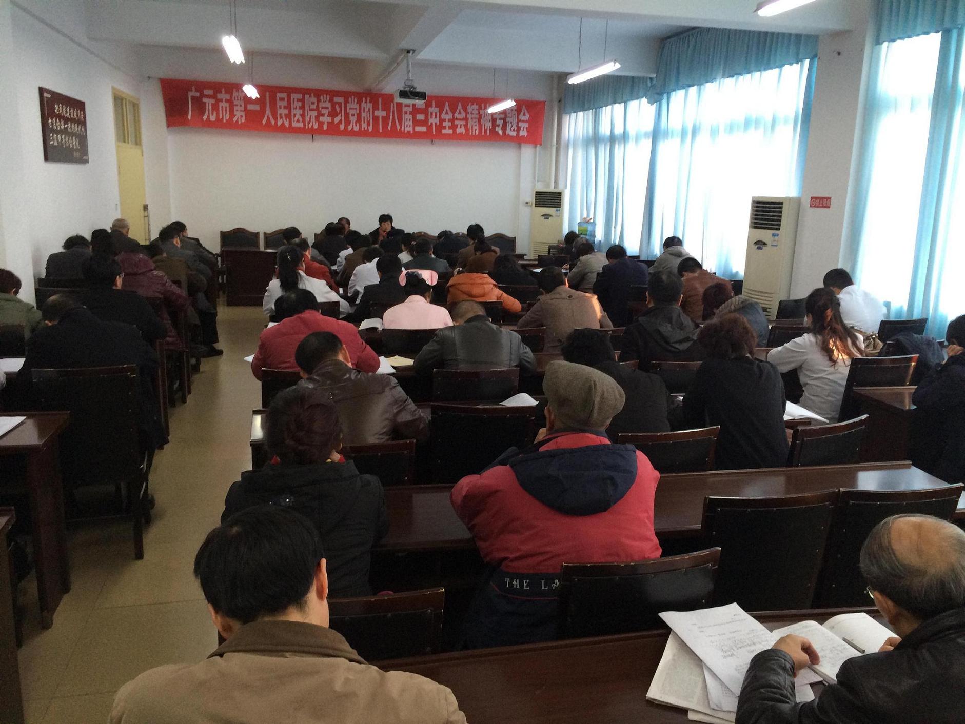 12月10日下午,我院学习贯彻党的十八届三中全会精神专题会在门诊五楼会议室举行。院党政班子成员、离休老干部、党总支及支部各成员60余人参加了会议,会议由院党委书记吴春瑛主持。