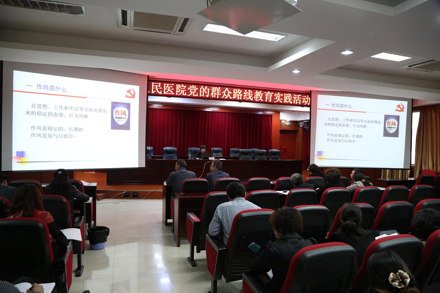 根据市委党的群众路线教育实践活动精神,按照我院党的群众路线教育实践活动领导小组安排,2014年4月3日下午,院党委书记吴春瑛在医院学术报告厅以《弘扬优良作风 密切联系群众》为主题作了党课报告,院领导、各党支部书记、支委、中干、党员聆听了讲座。