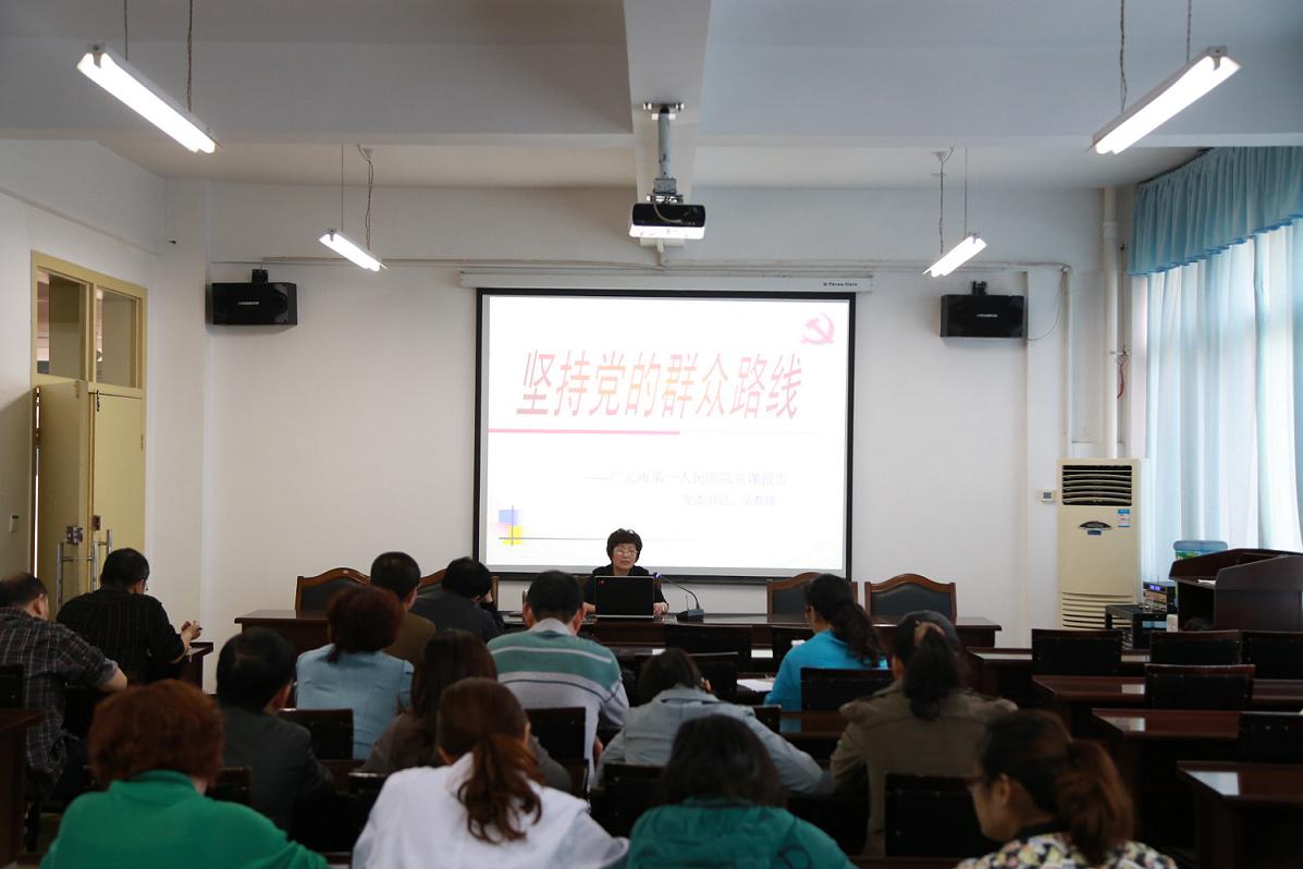 为切实发挥医院领导班子在践行党的群众路线教育实践活动中的示范带动作用,凝心聚力,提高全体党员干部党的宗旨意识和群众观念,4月23日下午,在门诊五楼会议室院党委书记吴春瑛以《弘扬优良作风,密切联系群众》专题为门诊全体党员干部上党课。