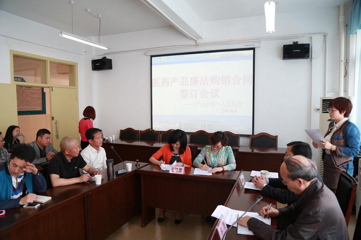 会上,工会主席廖雁(代管纪检监察工作)组织学习了国家卫生计生委印发《关于建立医药购销领域商业贿赂不良记录的规定》的通知(国卫法制发[2013]50号)及国家卫生计生委办公厅《关于落实医药购销领域商业贿赂不良记录规定有关工作的通知》(国卫办药政函[2014]163号)。四川广元科伦医药贸易有限公司法人代表周元新代表医药生产经营企业发言并作廉洁诚实守信承诺,将严格遵守《医疗卫生机构医药产品廉洁购销合同》。会议举行了《医疗卫生机构医药产品廉洁购销合同》签字仪式。