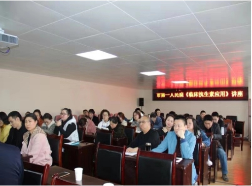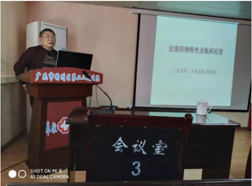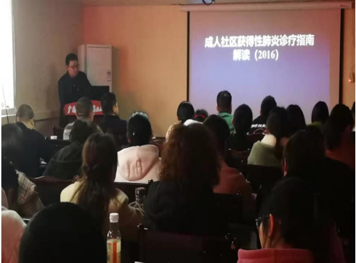针对基层医院常用的抗菌药物,感染科赖辉主任生动地讲授了一堂“抗菌药物特性及临床应用”课。现场基层医务人员聚精会神地聆听,思考如何在基层医院规范使用抗菌药物。随后,何兴副主任就“成人社区获得性肺炎诊治指南”对什么是社区获得性肺炎、如何诊断等内容进行了详细的讲解,并提出了相应的治疗意见。