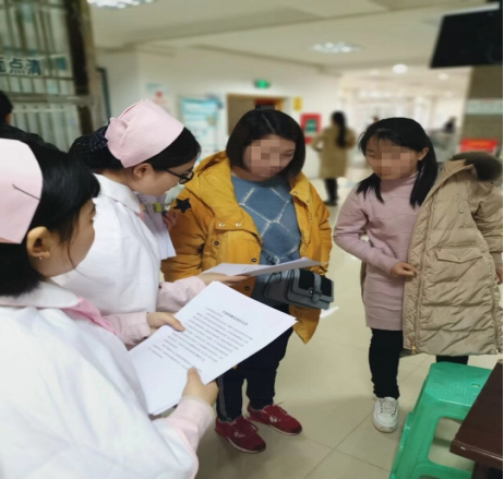 医护人员发放健康知识手册,对孕期糖尿病知识进行健康宣教,提高大家的健康素养。
