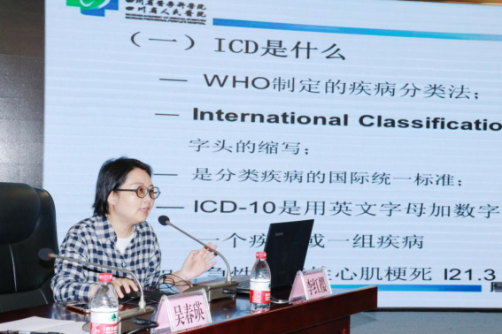 省病案质控中心主任李红樱围绕“病案首页的重要性、国际疾病分类ICD-10和手术操作分类、DRGS付费制度改革与首页关系、病案首页出院诊断如何正确选择”等病案首页中的相关知识进行了全面讲解,深入浅出地讲授了医务人员在ICD应用中的任务作用及对病案首页填写的具体要求,详细分析了2018年全院病案首页规范填写中容易错填、漏填等常见问题,提出了改进意见和措施。