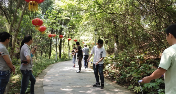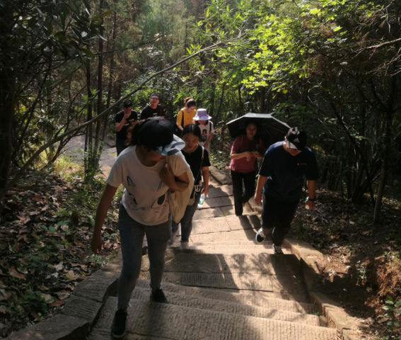 大家的心情如阳光般灿烂,不到8点,登山队伍已在湿地公园脚下汇合。随着放射科黄文光主任的一声口令“开始登山”,所有人便你追我赶向山顶冲刺。