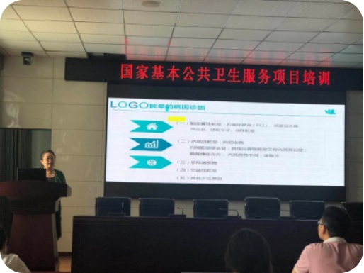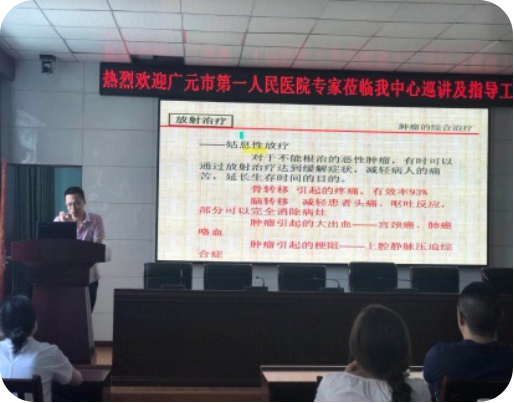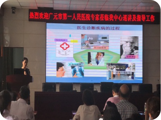 7月4日, 市第一人民医院全科医学科主任戴东璟、呼吸内科主任黄钦蓉、肿瘤血液科杨金平等专家一行前往利州区东坝社区卫生服务中心开展专业知识讲座。