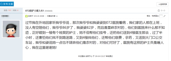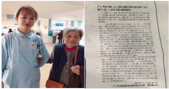 这位老太太为了感谢当天为她服务的导诊护士侯俊君,特意致电广元晚报新闻热线,通过媒体向她道谢。