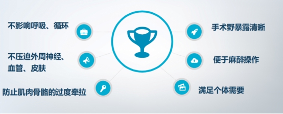 手术体位安置原则:(1)患者安全舒适、骨隆处衬软垫或防压疮垫;在摩擦较大的部位,衬以棉垫、油纱以减小剪切力。(2)充分显露手术部位,保持手术体位固定。(3)患者的神经、大血管不能被压,且要求固定患者肢体时加上衬垫,用力要适度,以保证患者的静脉血液回流正常。(4)保证患者呼吸通道不受挤压。(5)保证上肢低于90度的外展,让下肢膝总神经得到保护;保证患者俯卧位时能够让足尖自然下垂,对其小腿垫高。(6)麻醉医生要随时做好准备,尽量缓慢进行移位,且要求用力协调。