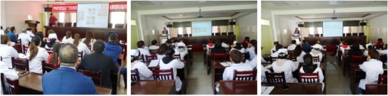 随后,市第一人民医院专家分别进行授课。呼吸内科主任、主任医师黄钦蓉就慢性阻塞性肺疾病的病因、临床症状与治疗药物等内容进行授课,她强调吸烟是导致该病的重要原因,基层医院是了解群众、深入群众、服务群众的最后一公里,医院不仅要建设“无烟医院”,更要向人民群众传播病理知识,增强大众的自我健康保护意识。肿瘤血液科杨金平医生就宫颈癌的预防、早期识别和治疗原则等内容进行讲解,同时介绍了当前我院肿瘤血液科开展一系列先进治疗技术。全科医学科何莲医生同大家分享了高血压的防范管理、降压原则与治疗方案等相关知识,并着重介绍了进一步筛查高血压的策略,做到及时发现,及早治疗。