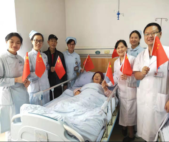 当十月的第一缕阳光照耀大地,我们迎来了中华人民共和国的生日,在这举国上下欢庆的日子里,神经内科医护人员与患者一起,共同祝福祖国母亲生日快乐!看着一面面五星红旗在病房飘扬,每一位医生、护士、患者内心回荡着身为一名中国人的自豪,70年栉风沐雨,70年光辉荣耀,祝愿祖国的明天越来越美好!