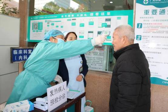 “您好,来,先测一下体温。”