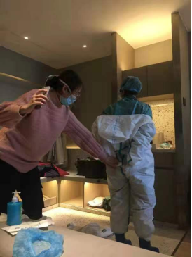 1月29日下午14点,广元医疗队开展穿脱防护服培训,为次日下病房做准备。