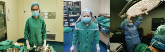 医务人员的防护:科主任及护士长积极组织全科人员学习培训新型冠状病毒肺炎的防治防护知识,法律法规。要求全科人员术前详细了解每位患者的疫情接触史及家属的疫情接触史,确保患者100%的筛查率。在自我防护方面,科室自购护目镜,每人配备一副,术中佩戴,防止在手术过程中的体液血液喷溅,用保鲜膜贴于键盘上,用后更换,避免接触感染风险。因防护物资紧缺,科室同事积极开发,利用现有的条件,自制简易的防护用具进行自我防护。操作过程中严格执行手卫生。严禁非本间手术室人员进入,管控好每个手术间。