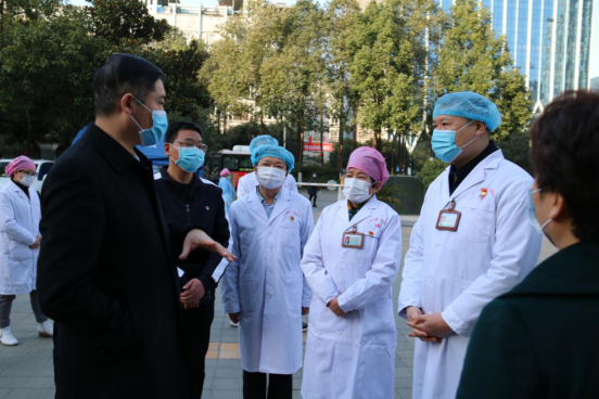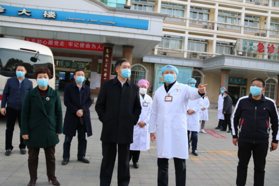 邹自景市长详细询问医院预检分诊、发热门诊、发热病人隔离通道、物资储备、医务人员防护工作等情况,对医院采取的防控措施给予肯定。他强调要进一步优化发热病人就医流程,落实好发热人员的筛查工作,严阵以待、严防死守,防止出现院内交叉感染,同时要做好口罩、防护服等物资储备工作,确保各项防控措施落实到位,全力打赢疫情防控阻击战。邹自景市长还关切询问了援助湖北医疗队员的生活、工作情况,要求医院要随时关注、了解前线援鄂队员的需求,为他们做好全方位的保障工作,确保前线的勇士们全身心投入到防疫战斗中,早日平安凯旋。