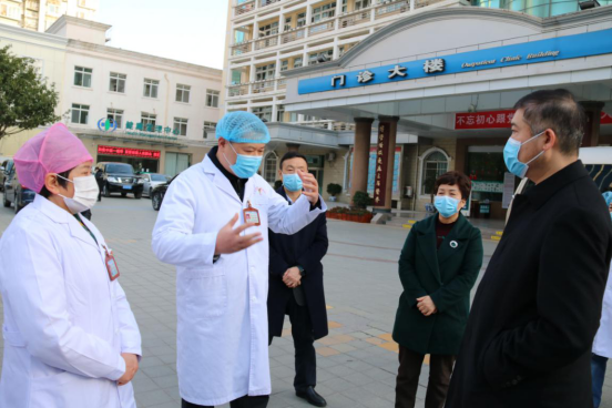2020年2月16日下午,市委副书记、市长邹自景带领副市长吴桂华、市卫健委主任袁明胜一行来院督导检查新冠肺炎疫情防控工作。院党委书记吴春瑛,党委副书记、院长刘峰等领导班子成员及相关科室负责人陪同。