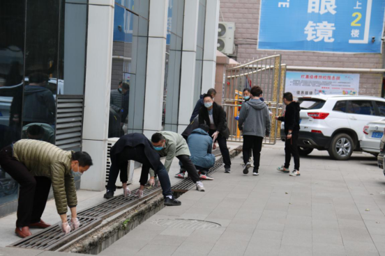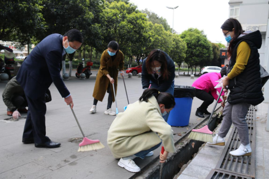 党员干部职工充分发挥党员的带头作用,履行党员义务,身体力行,参与到大扫除当中。停车场、花园、天井、食堂、厕所、下水道……大家发挥不怕脏、不怕累的劳动精神,认真打扫每一个角落,不放过任何一个卫生死角。下水道的污泥溅了一身,也依然坚持把卫生做完。
