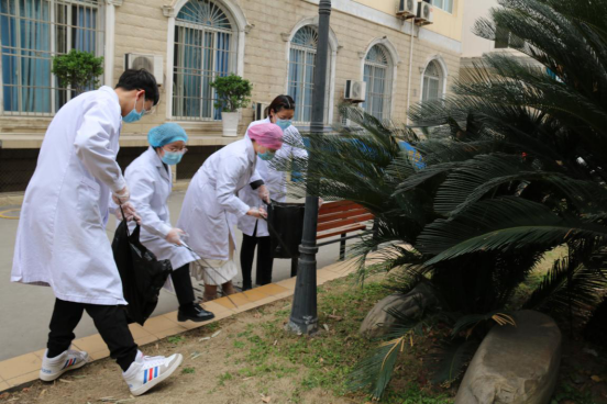 因疫情还未完全解除,为避免避免人员聚集、扎堆,医院分为住院党总支、门诊医技党总支、行后党总支三个小组,分别对内外科住院部、门诊大楼、综合楼等片区进行全面清洁打扫。