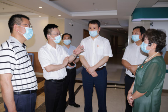 2020年6月24日,市委副书记冯磊带领市卫健委主任袁明胜等一行来院开展新冠肺炎疫情防控工作调研。党委书记吴春瑛,党委副书记、院长刘峰等领导班子陪同。