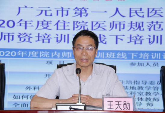党委委员、副院长王天勋在培训班上做了讲话,强调了住院医师规范化培训的重要性:一是医学生毕业后教育的重要组成部分,通过住院医师规范化培训使医学生成为合格临床医师,更好地适应临床工作。二是三甲综合医院的社会责任和担当。三是医院高质量发展的必然要求。要求全院住培教师要以师资培训为契机,在教学工作中进一步加强新冠肺炎防控知识的学习和培训,为坚决打赢抗击新冠肺炎防控全民战役做出新的贡献,同时要求全体教师和住培管理者不断加强自我学习,努力创新教学方法、全力提高教学水平和教学质量,为把我院建成川陕甘毗邻地区一流的现代化国家综合医院贡献自己的力量。