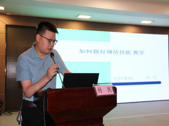 内科住培基地秘书何兴副主任医师就《如何做好规培技能教学》作了报告。他分享了 “成医杯“技能比赛的经历、感想和心得,总结了在日常的教学活动中如何强化自身本领、规范教学,实现由临床医师“以病人为中心”转变为教学工作中“以学生为中心”的角色转变,通过老师的带教,充分带动学员学习积极性、主动性、能动性,提高学员学习效果,最终达到提升教学质量。