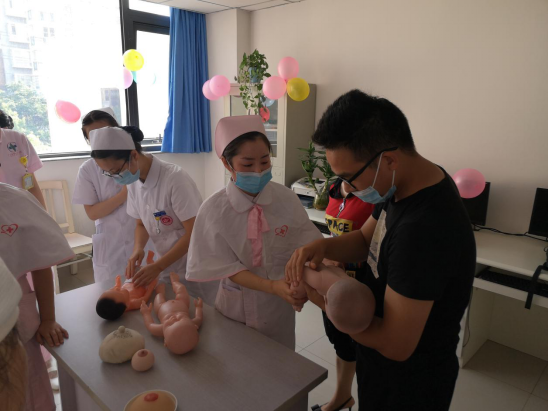 活动开始,产科护理人员邀请了30多位准爸爸、准妈妈及新手父母,还有数名产科的新入实习生也主动参与了活动。