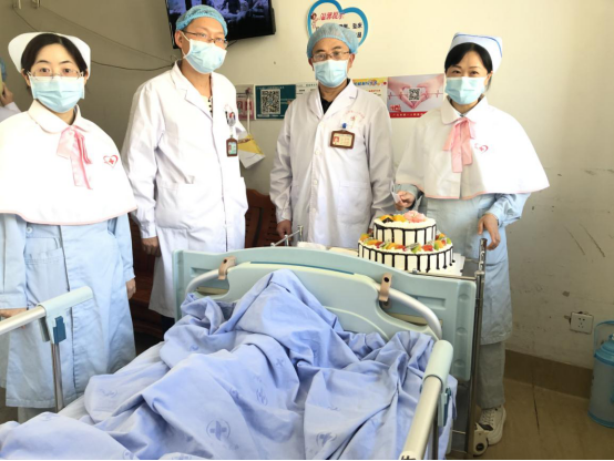 下午,病房里也是热闹非凡,大红灯笼高高挂,庆祝标语一排排。经过精心装扮的病房,到处都洋溢着节日的气氛。考虑到疫情期间,人员不能过于聚集,大家就决定就把蛋糕送到病房里。当从主任和护士长手里接过蛋糕的时候,患者和家属都不停地表示感谢,并互道节日祝福,医患其乐融融,充满了幸福和温馨。