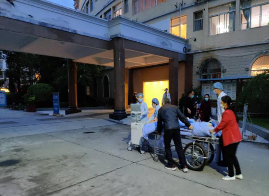 术后,医务人员面临着又一难题:如何把一个带着呼吸机、氧气筒,带着主动脉内球囊反搏(IABP)、心电监护、数个微泵且病情危重的患者从介入室安全转回ICU 。转运过程风险太高,稍有不慎就会让之前的努力前功尽弃。经过快速合理的任务分配,最后在几位经验丰富的医生护士的默契配合下顺利将患者送回ICU。