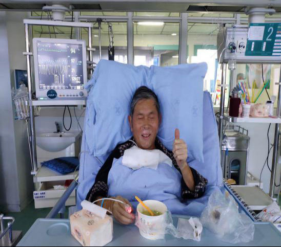回到ICU后,何剑成医生一直守候在病房,为患者制定了一套精准详细的救治方案。在医护人员的悉心照料下,患者情况逐渐好转,血管活性药物减停,停止呼吸机辅助呼吸,撤出IABP,拔管,吸氧.....于10月8日顺利转出ICU。临走之际,患者恳切地说到:“何医生,能不能摘下帽子和口罩,让我看看您,谢谢您的救命之恩。”
