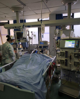 一例蜂蛰伤伴呼吸衰竭的患者转入ICU,入科时血氧饱和度60%,呼吸急促,尿液呈酱油色,生命危在旦夕,救治刻不容缓。值班的副主任医师邢朝阳凭借多年危重病人临床救治经验,在两位值班护士的密切配合下迅速完成了气管插管、呼吸机支持呼吸、床旁CRRT治疗(血液灌流、血浆置换)。