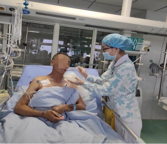 秉承人文关怀的理念,重症人在努力祛除患者病痛、救治生命的同时,密切关注着患者的心理变化。在恢复期,医护人员发现患者情绪低落,不愿言语,便延长了家属入室探视的时间。在工作之余,大家也会抽时间陪患者说说话,告诉患者一些疾病的良好愈后情况,缓解患者的压力,帮助其树立战胜疾病的信心。