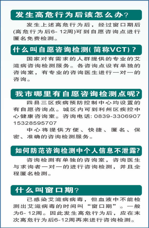 活动现场,医护人员为群众提供免费咨询,热情耐心地解答疑问,通过悬挂宣传横幅、摆放宣传海报、发放宣传资料、提供卫生纸巾、设置健康咨询台等形式营造浓厚氛围,开展宣传活动,帮助广大群众了解艾滋病的基本概念、传播途径、高危行为、窗口期含义、自愿咨询检测途径以及防范措施等,同时向群众宣传国家艾滋病防治“四免一关怀”政策。