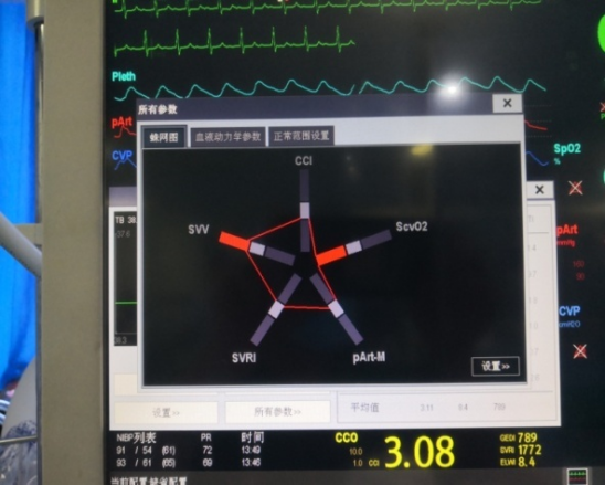 PICCO监测仪是一种对重症病人主要血流动力学参数进行监测的工具,该仪器特点有简便、微创、高效,可以测定动脉压、心率、每搏量等数据。主要利用经肺热稀释技术和脉搏波型轮廓分析技术,进一步测量血液动力数据,指导容量管理,并使绝大多数病人不再需要放置Swan-Ganz导管,同时可计算胸内血容量(ITBV)和血管外肺水(EVLW)。ITBV已被许多学者证明是一项可重复、敏感、且比肺动脉阻塞压(PAOP)、右心室舒张末期压(RVEDV)和中心静脉压(CVP)更能准确反映心脏前负荷的指标。