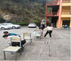 第二项趣味比赛为“携球越野”。队内不同人员两两组合,携带气球跨过重重障碍到达终点,黑队首战败而不馁,扳回一局。