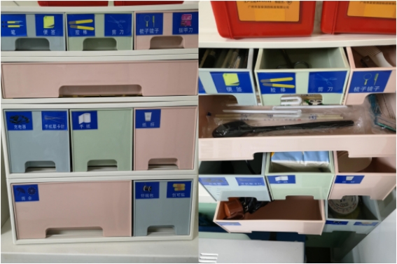 科室的便民箱已服役多年,里面的东西既没有分类放置,也无专人管理,常常处于缺东少西的闲置状态。患者经常期待而来,失望而归。如今一个大容量的便民箱再次上岗,不仅有颜,还有料。九个抽屉上清晰标记着里面放置的物品。便签、笔、指甲刀、手纸、纸杯、针线包……应有尽有,绝对让患者心满意足,真正实现了让便民箱方便患者,服务群众。