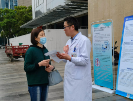为扎实开展党史学习教育,推动党史学习教育成果转化为服务群众的生动实践,在第27个全国肿瘤防治宣传周到来之际,市第一人民医院妇科联合肿瘤血液科所在的内分泌联合党支部于4月23日在广元市利州区东坝金橄榄国际广场、沃尔玛超市门口开展了“点亮抗癌之路,助力健康中国”防癌义诊活动,旨在提高全社会癌症预防和早期筛查意识,营造全民防癌抗癌的科学氛围,
