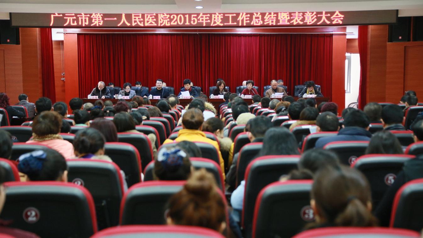 1月21日下午,我院在学术报告厅召开了2015年度工作总结暨表彰大会。会议由党委书记吴春瑛主持,市卫计委主任吴桂华、副主任邓功会、医政科长翁彬、院班子成员、中层干部、部分职工代表及离退休干部共计300余人参加了会议。