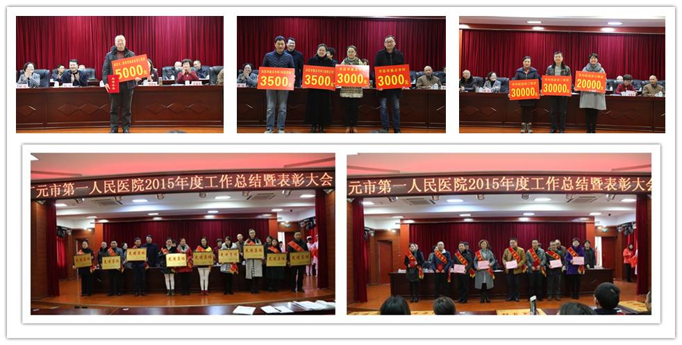 会上,对2015年度先进集体11个,先进个人56名,优秀中层干部16名,离退休工作积极分子2名,见义勇为个人1名,扶贫工作先进个人1名,市级科技进步奖3项、省市重点专科建设项目4个,新技术新项目5个进行了表扬、表彰。